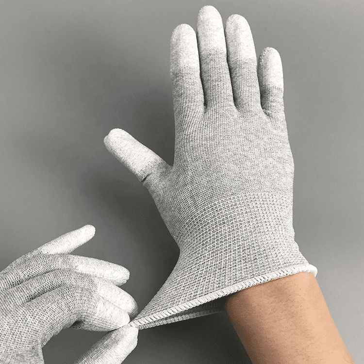 Nylon คาร์บอนไฟเบอร์ ESD Finger Glove PU ทำจากเส้นด้ายไนล่อนและเส้นด้ายนำไฟฟ้าคาร์บอนไฟเบอร์ที่มีประสิทธิภาพสูง การเคลือบ PU บนนิ้วหรือต้นปาล์มช่วยอำนวยความสะดวกในการประกอบการประกอบและไม่ทิ้งลายนิ้วมือ มีการเพิ่มเรซิ่นนำไฟฟ้าลงในการเคลือบ PU เพื่อให้ต่อต้านการคงที่ การซึมผ่านของอากาศที่ดีล้างทำความสะอาดได้