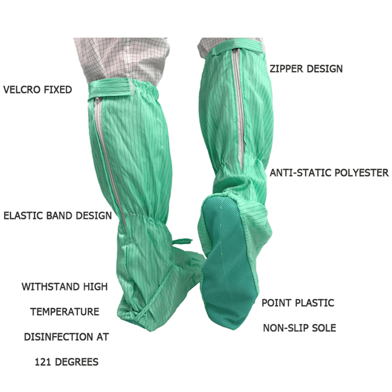 ในสภาพแวดล้อมที่มีมาตรฐานสูงเช่นอุปกรณ์อิเล็กทรอนิกส์การผลิตเซมิคอนดักเตอร์และห้องพักที่สะอาดรองเท้าบูทป้องกันสแตติกให้บริการมากกว่าการป้องกันแบบคงที่ วัสดุด้านล่างของมันสามารถลดผลกระทบของกระแสไฟฟ้าคงที่ต่อสิ่งแวดล้อมและกำจัดฝุ่นในห้องสะอาดได้อย่างมีประสิทธิภาพ ฟังก์ชั่นคู่นี้ทำให้รองเท้าบูทต่อต้านสแตติกเหมาะสำหรับการรักษาสภาพแวดล้อมที่สะอาดช่วยรักษาความสะอาดในระดับสูงในพื้นที่ทำงาน